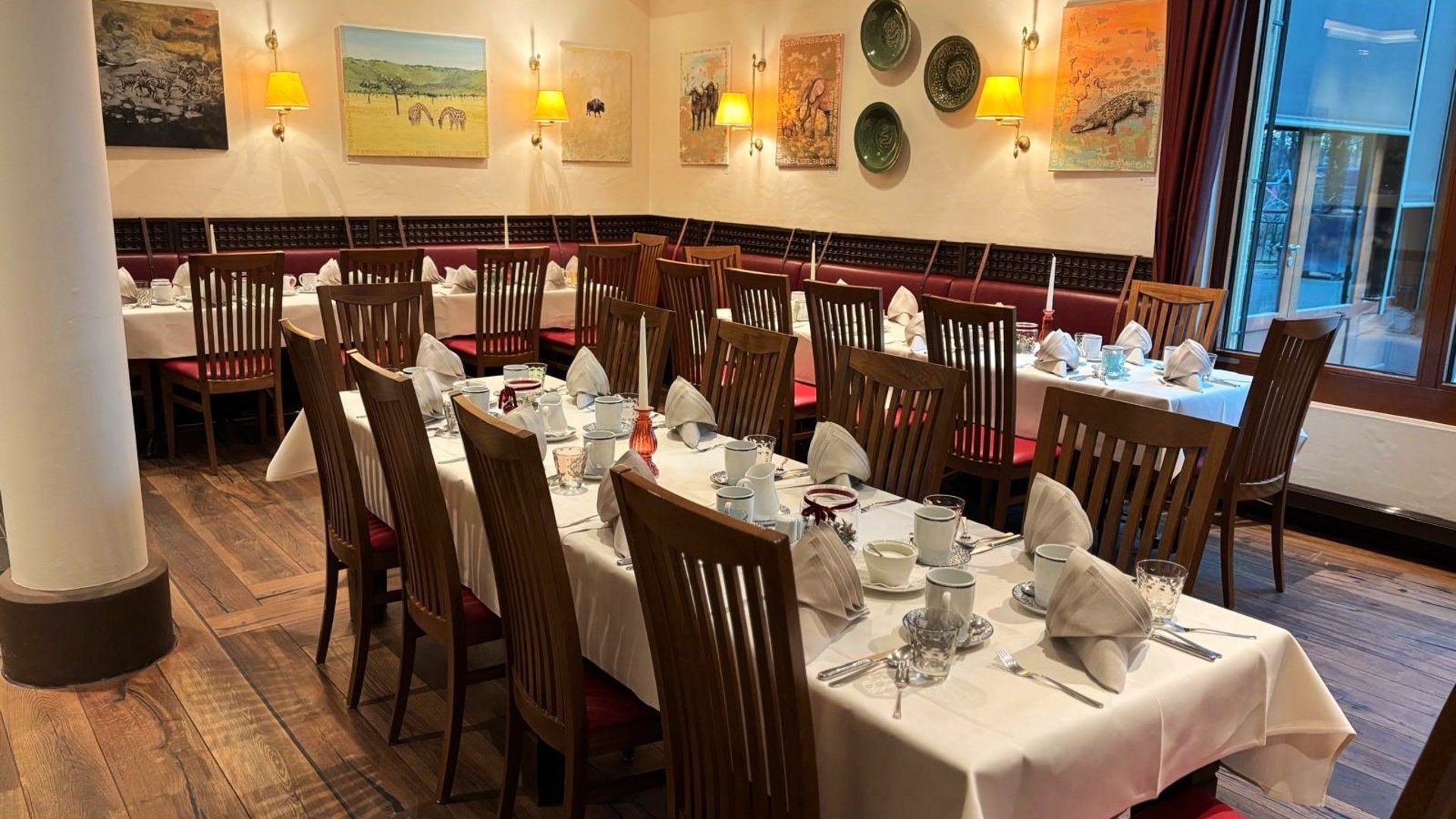 Je nach Personenanzahl richten wir die Bestuhlung entweder an runden Tischen oder in Tafel-Form ein, um den Ablauf und die Atmosphäre optimal zu gestalten. Bitte beachten Sie, dass eine Raummiete anfällt.